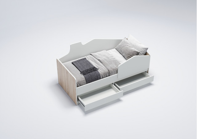 Два выдвижных вместительных ящика оборудованы телескопическими направляющими с фиксаторами, обеспечивая легкость и плавность выдвижения. Эти ящики помогут поддерживать порядок в комнате, а также предоставят дополнительное пространство для хранения игрушек, книг, одежды и других детских принадлежностей.